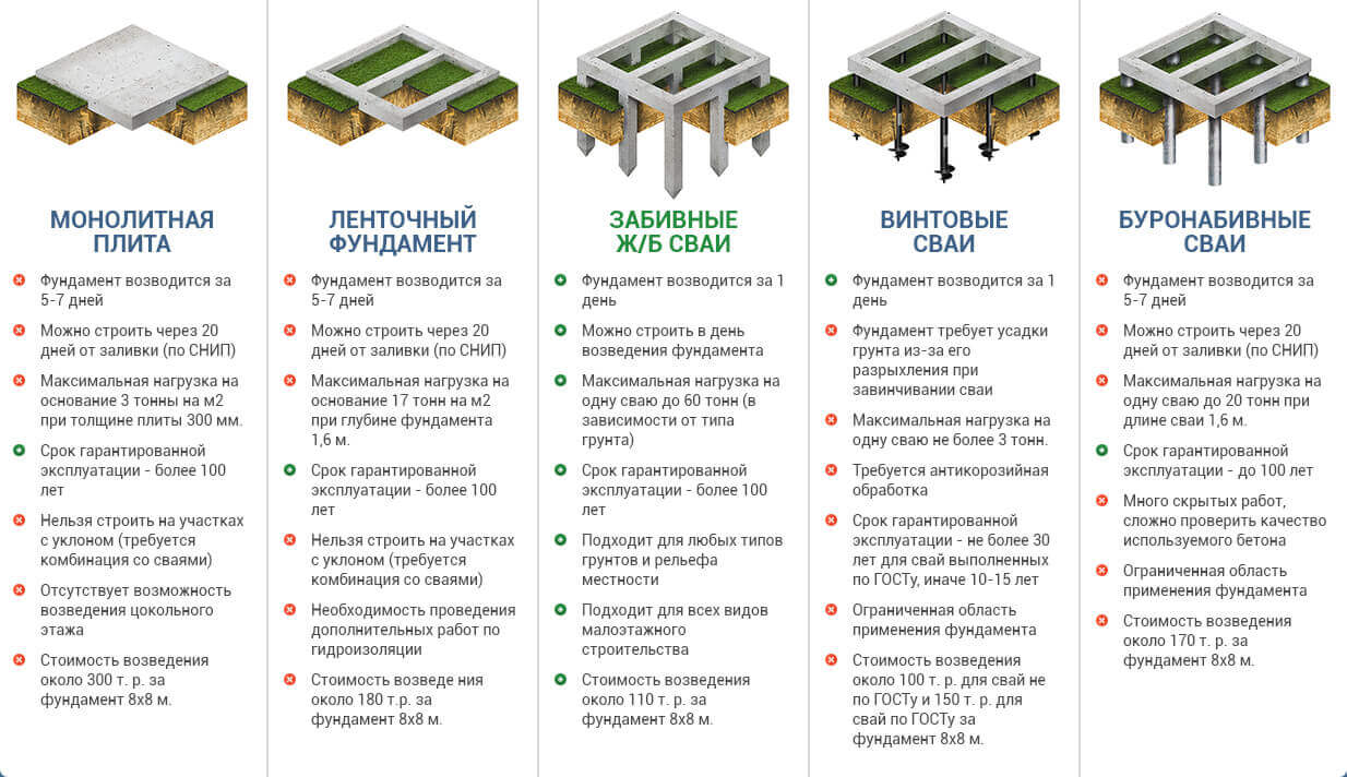Фундаменту из ЖБ Свай не нужно время для усадки Строительные работы можно начинать незамедлительно